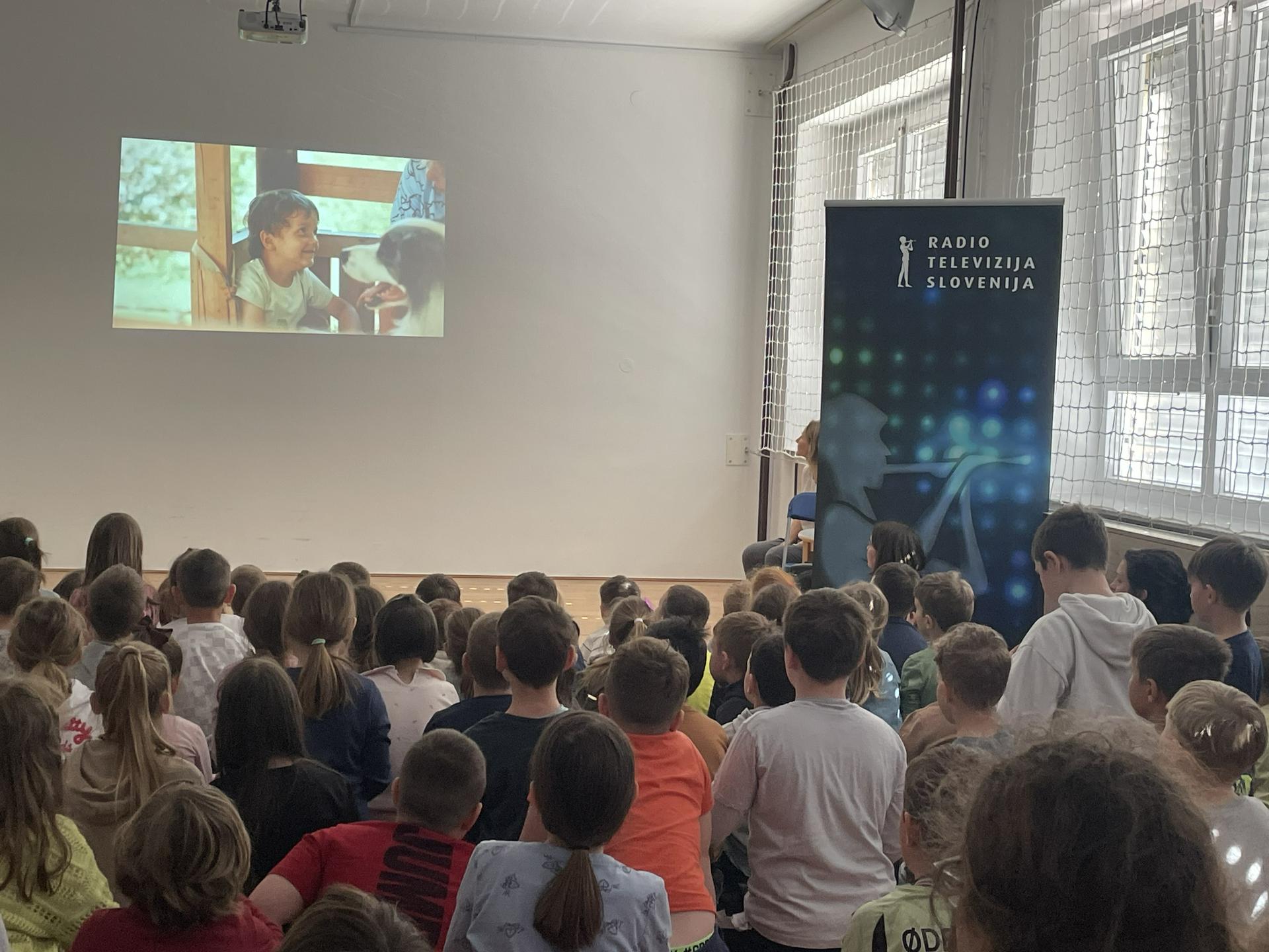 Učenci iz Osnovne šole Center Novo mesto, podružnica Mali Slatnik, ki jo Šnofki tudi obiskujejo, so si med prvimi lahko ogledali enega od dvanajstih delov oddaje. Foto: Tanja Mojzer