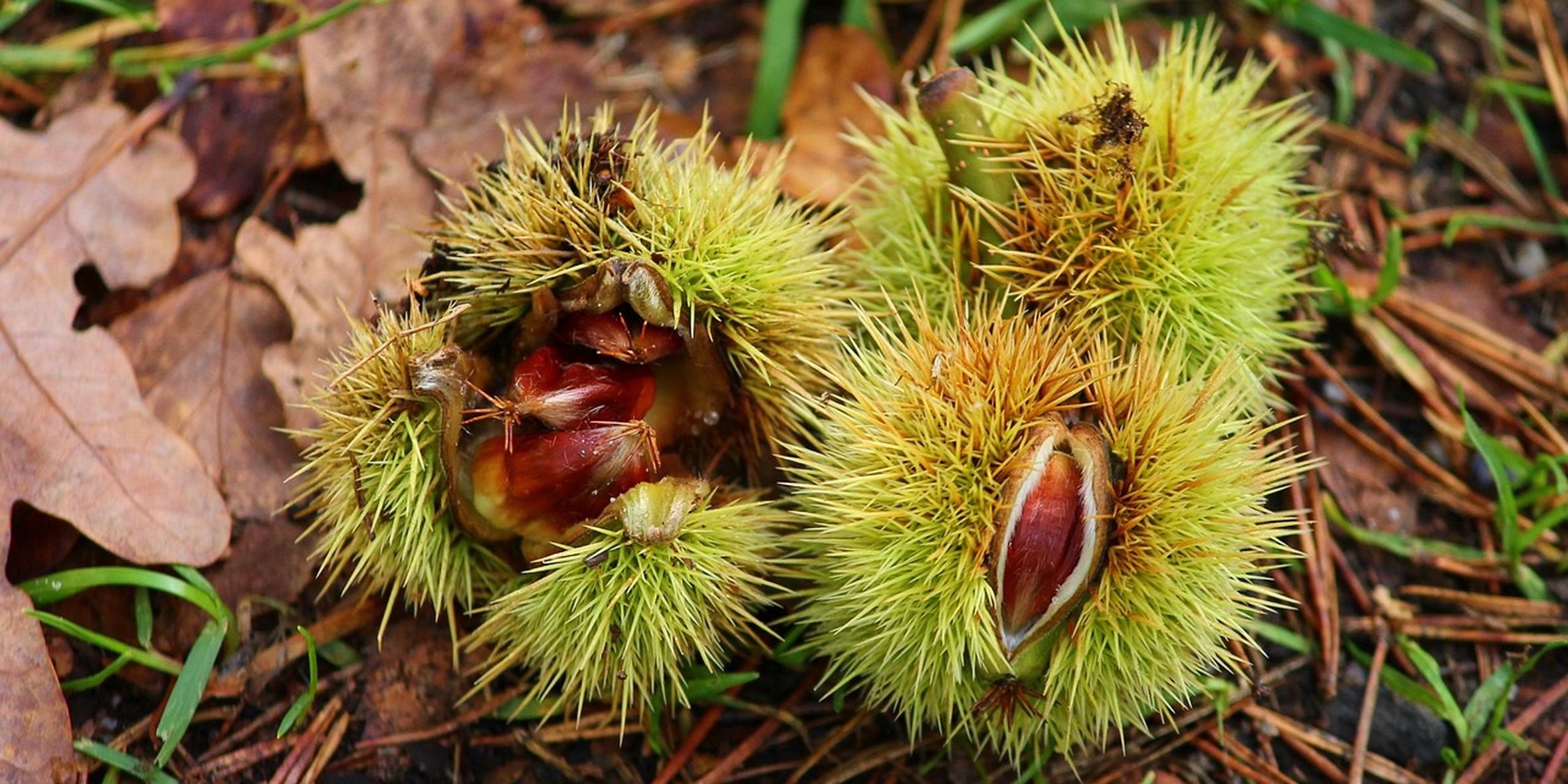 Kostanji rastejo v igličastem ovoju, ki ga imenujemo tudi ježica. Gre za naravno zaščito, saj odvrača živali, kot so srne, glodavci ali ptiči, da bi jedli plodove, še preden so zreli. Foto: PixabayJežica ščiti notranji plod pred vlago, mrazom in mehanskimi poškodbami, kot je toča ali močan veter. Deluje kot nekakšen naravni "oklep". V vsaki ježici je več plodov. Foto: PixabayKo je plod zrel, se igličasti ovoj odpre in pade na tla, kar omogoči, da kostanj pade ven in ima možnost vzkliti. Včasih trnje tudi ovira nekatere živali, da bi vse plodove pobrale, kar poveča možnost, da se vsaj nekateri zasejejo in zraste novo drevo. Foto: MMC RTV SLO