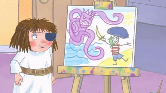 Mala kraljična se igra superjunakinjo in se ničesar ne boji! Ničesar, razen nevihte. Ko grad zajame močna nevihta, se zateče v notranjost. Kmalu pa ugotovi, da je kuža obtičal v nevihti in da ga bo moral nekdo rešiti …