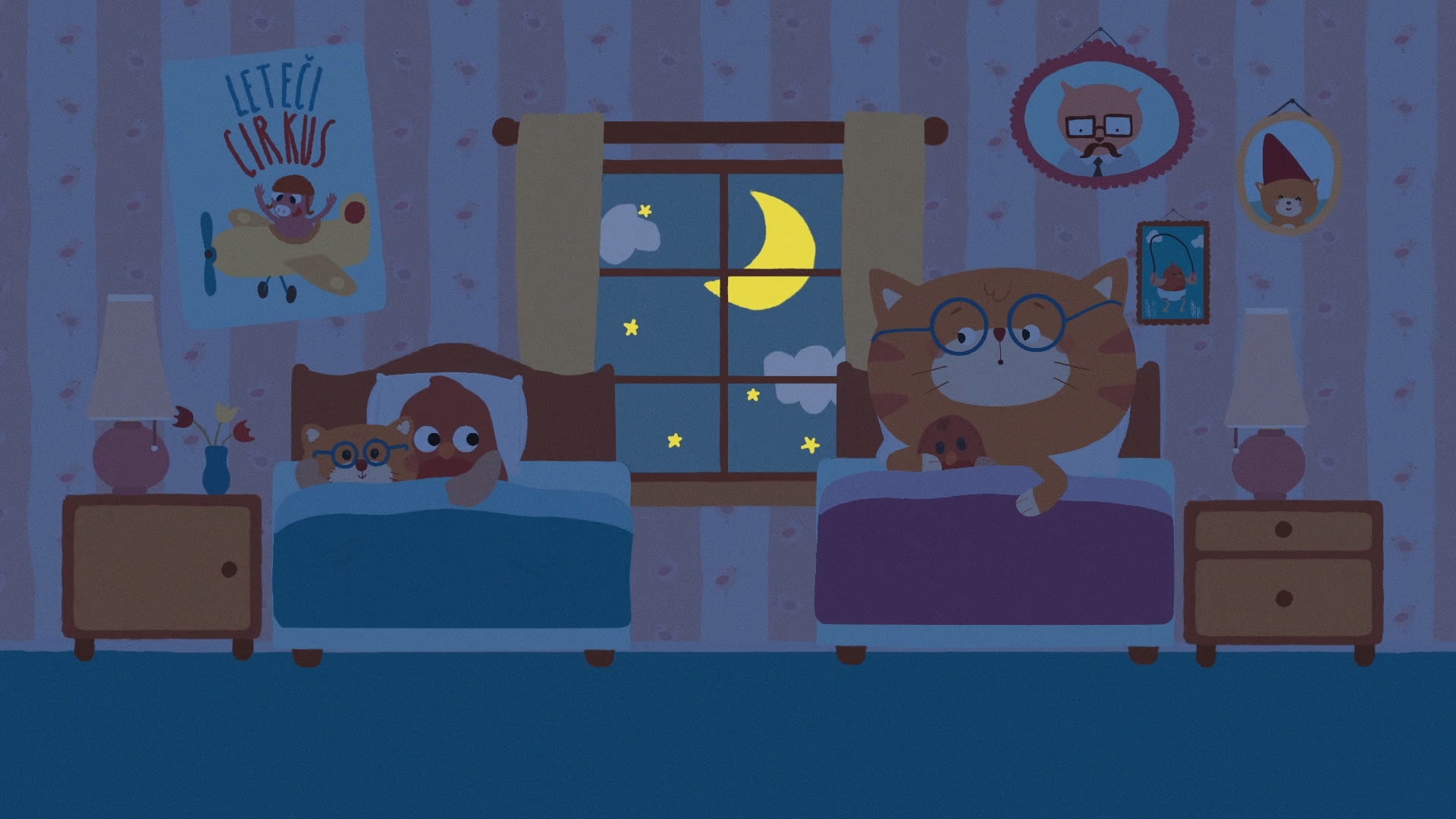 Večer je, Mišo in Robi sta zelo zaspana in pripravljata se na spanje. Pridno si umivata zobe, ko pri vratih zazvoni. Nepričakovani gostje bi se z Mišem in Robijem radi igrali, Mišo in Robi pa jim namesto igre pripravita uspavanko in kozarec toplega mleka za lahko noč.