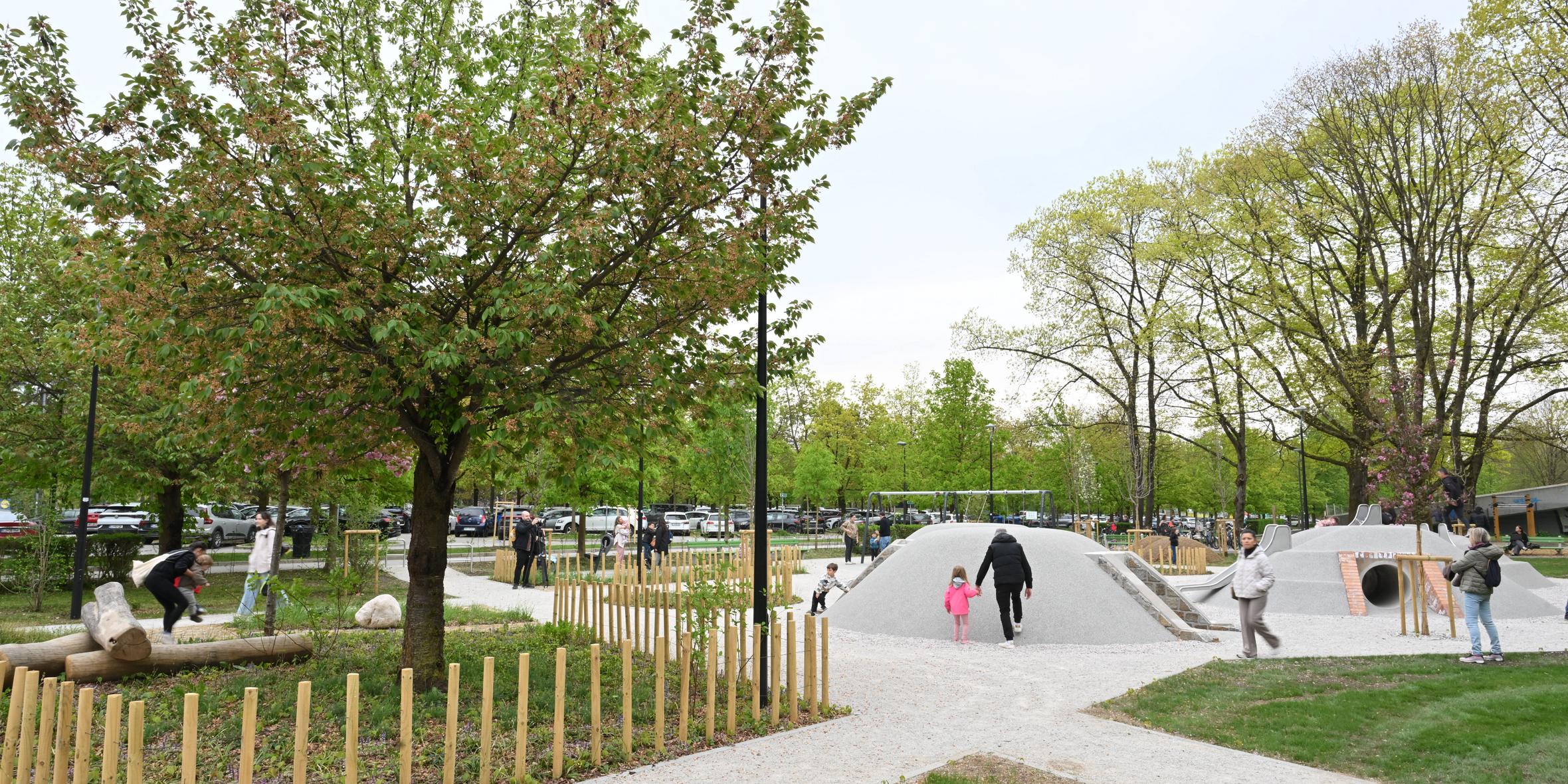 Za zagotavljanje večje osenčenosti so na igrišču gručasto zasadili tudi drevesa, na igrišču pa so med igrala umestili nižjo grmovno vegetacijo, so pojasnili. Živo mejo na vzhodnem robu so dopolnili in zgostili tako, da bo klopem ob njej omogočala zavetje. Po celotnem območju so dodali in zamenjali urbano opremo, kot so klopi, koši za smeti in stojala za kolesa, ki so na vstopnih točkah, kjer je tudi pitnik.