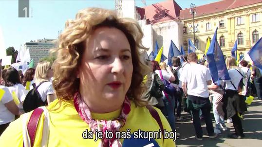 Na protestu v Zagrebu zahtevali višje plače in pokojnine
