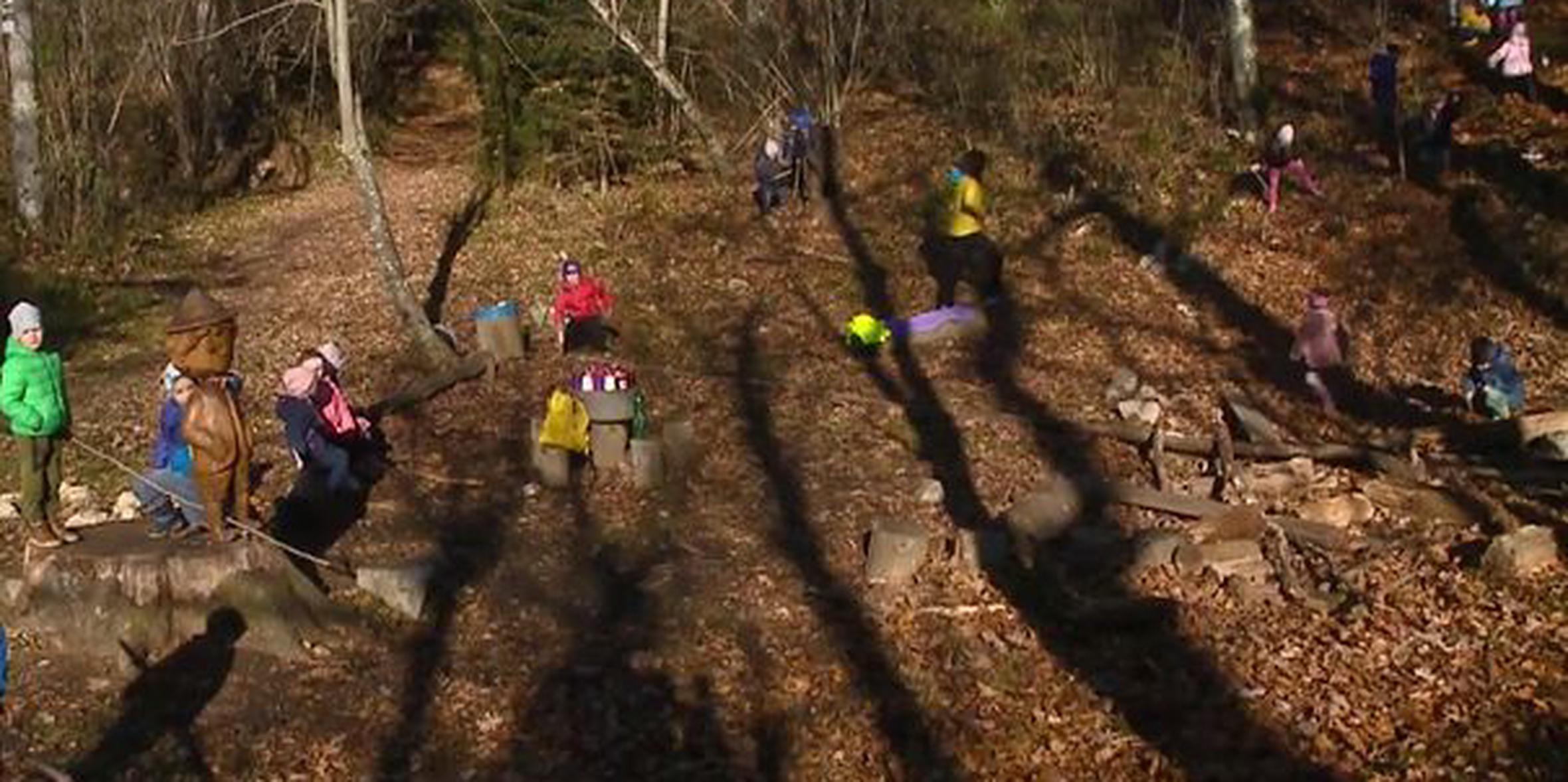 Vzgojiteljica Senja Marušič iz Vrtca Postojna redno vozi otroke v bližnji gozd: "Otroci uživajo in si vedno več upajo, zato jim moramo omogočiti vedno več takih situacij. Pri tem lahko pride tudi nezgod in prav tvegana igra pripravlja otroke na nevarnosti, da se opremijo z znanjem in spretnostmi, kako delovati v nevarnih situacijah v življenju."