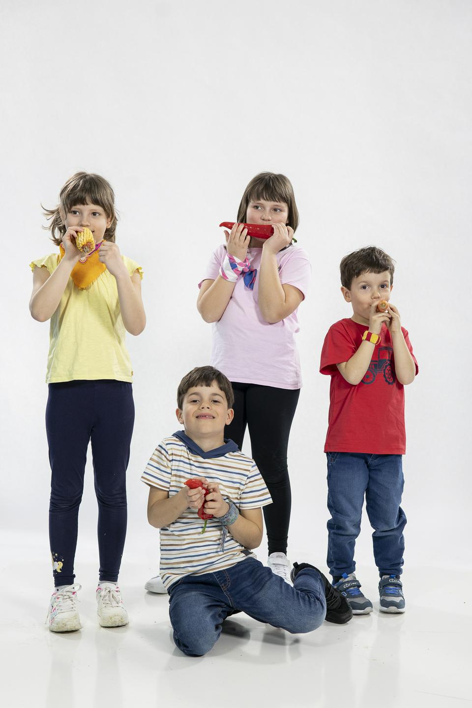Pa je bilo lepo snemati? »Najbolj mi je ostalo v spominu, ko smo snemali oddajo v gozdu in sem se kot lisička z žago lisičji rep za drevesom skrivala Alekseju, ki me je moral najti,« pripoveduje 7-letna Janja.