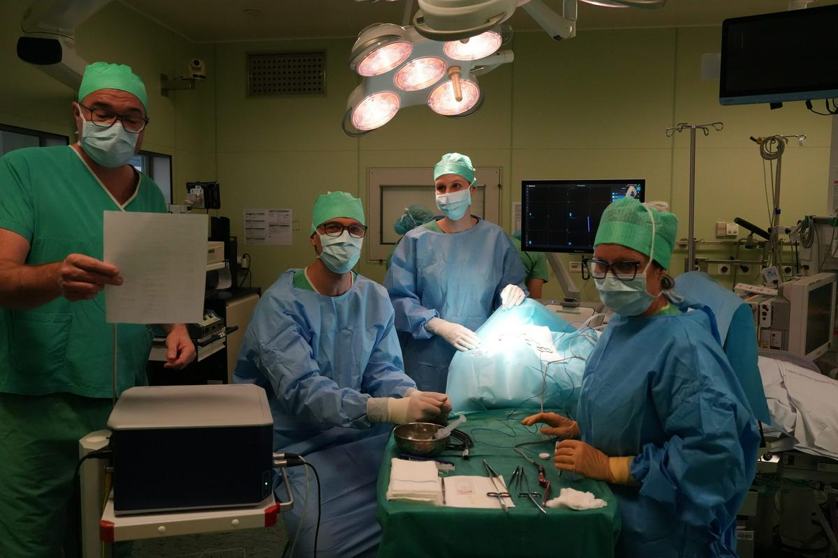 Operativni poseg pri Urbanu je z ekipo opravil Peter Spazzapan s kliničnega oddelka za kirurgijo, ki je pojasnil, da je bila operacija skrbno pripravljena in da so se nanjo dolgo pripravljali. "Zdravilo smo aplicirali v možganske ventrikle, ne v krvni obtok. Najprej smo ga aplicirali na levi strani, potem na desni, na vsako stran smo vbrizgnili 10 mililitrov. Poseg je uspel brez težav, Urban je hitro okreval, ni imel težav. Prvi uspeh nas navdaja z optimizmom in upamo, da bomo tudi v naslednjih primerih tako uspešni," je bil zadovoljen.